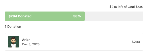 | Display Donated vs Goal | Show amount remaining text | Yes |