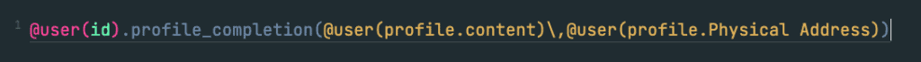 Click between the () and start searching for your profile fields. ALERT: Be sure to pick the correct fields. If you are using the @user(id), then you need the @user(profile.FIELD_NAME) fields. Same for author.