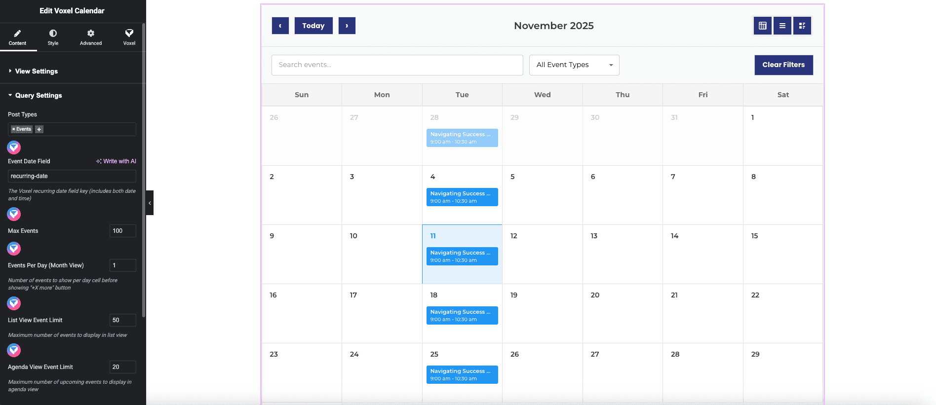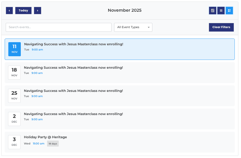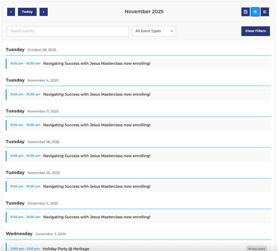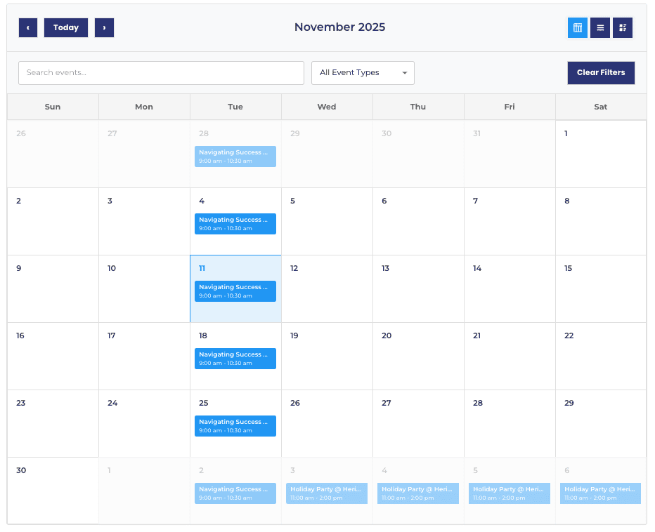 Enhance your Events archive with THREE calendar views. Monthly, List, and Agenda.