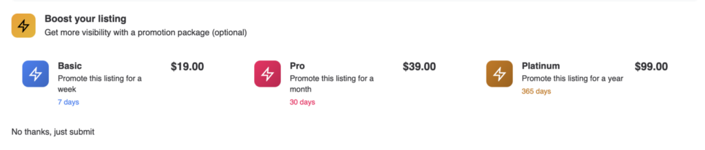 Add promotion package selection directly to Voxel’s Create Form widget. Users can select a promotion before submitting their post, then get redirected straight to checkout – streamlining the promotion purchase flow.